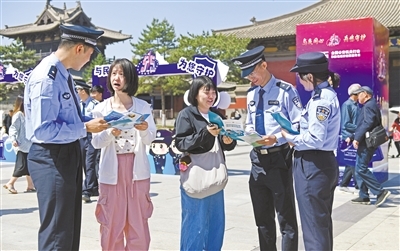 本报讯 (记者 郑苗苗) 今年5月15日是第十六个全国公安机关打击和防范经济犯罪宣传日。昨日,市公安局牵头,联合市政府办公室、中国人民银行大同市分行、国家金融监督管理总局大同监管分局、市税务局、市市场监管局、市城管局及部分商业银行、保险机构等,以“与民同心,为您守护”为主题,在华严广场举办全市公安机关“5·15”打击和防范经济犯罪宣传日活动。