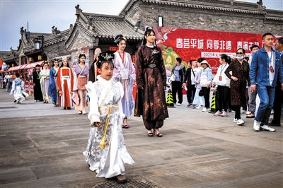 今年“五一”假期,我市精心策划、创新布局,在古城内推出多元化文旅产品矩阵,文旅演艺、惠民演出、特色展览、非遗集市等活动轮番上演,让古城持续焕新,为游客带来全新体验。创新推出的“古城也很潮”系列活动,让古城全域热潮迭掀,“花木兰巡游”等传统文化IP活化展示,“国潮快闪”等年轻化表达,以及别具一格的“北魏服饰展演”等受到游客欢迎。“五一”假期,大同古城累计接待游客46万余人次,冠领山西,潮动全国。