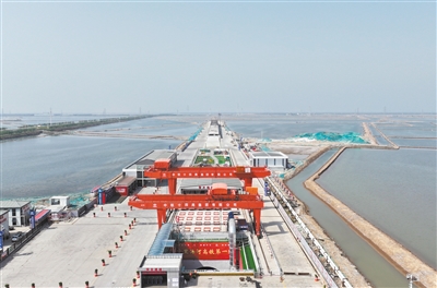 5月19日拍摄的津潍高铁津沽海河隧道盾构工区(无人机照片)。