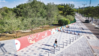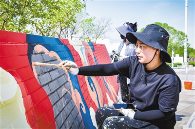 5月20日上午,记者在文瀛湖风景区喇叭口广场入口处看到,创作人员正在以云冈石窟飞天、藻井、祥云纹等经典元素为灵感,精心打造飞天主题彩绘墙。此次打造的飞天主题彩绘墙是文瀛湖风景区管理中心推进“三大提升行动”的重要项目之一,这一别具匠心的景观完工后将成为我市又一文旅打卡点。 本报记者 韩堃摄
