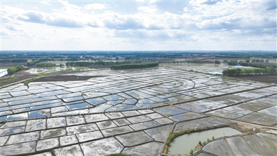 五月二十二日拍摄的内蒙古兴安盟扎赉特旗好力保镇的稻田(无人机照片)。