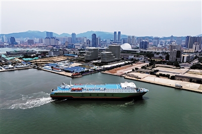 五月三十一日,新能源汽车运输船“绿安通”轮正式投入烟台—大连航线运营,标志着渤海海峡新能源汽车海上运输专线开通。