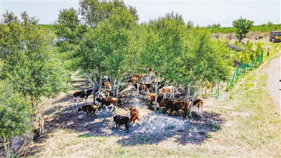 6月4日,云冈区高山镇罗家辛窑村瑞和致富种养专业合作社饲养的西蒙塔尔肉牛在牧场尽情吃草。该合作社以“合作社+农户”发展模式,不断探索多元经营路径,大力发展特色养殖产业,不仅带动当地村民就业,还增加了村民收入。