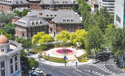 这是六月三日拍摄的位于天津市和平区成都道与西安道交口的一处口袋公园(无人机照片)。