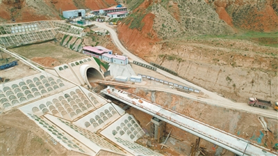 这是已经贯通的兰合铁路赵湾隧道(6月6日摄,无人机照片)。