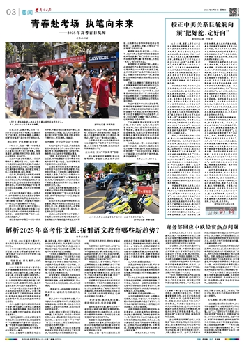 以笔为舟,以梦为帆。6月7日,2025年全国高考拉开帷幕。记者在北京、广东、重庆、贵州等地看到,各地精心保障“平安高考”,助力学子们顺利赴考。
