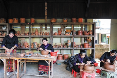 黎族原始制陶技艺作为国家级非物质文化遗产,承载着黎族人民千年的智慧与文化记忆。在海南三亚黑土村,黎陶合作社带领村民们走出一条从传统泥间技艺到现代销售的致富新路。黑土村的黎陶合作社以传承黎族非遗技艺为核心,村民们在合作社的支持下,学习和传承黎陶制作工艺,销售黎陶产品。通过合作社的市场推广,黎陶产品成为当地的文化名片,也为村民带来了可观的经济收益,实现了非遗传承与乡村发展的双赢。图为,6月9日,在海南三亚黑土黎陶合作社里,村民们制作黎陶。