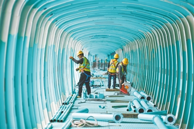 6月11日,建设者在贵州花江峡谷大桥上安装观景长廊。