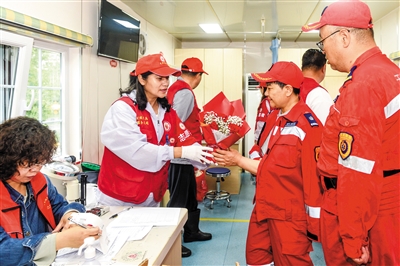 记者在活动现场看到,献血屋内外人头攒动,每一名献血志愿者都精神饱满、热情高涨,大家有序排队、耐心等候,现场秩序井然。在工作人员的指引下,志愿者依次填写无偿献血登记表,并进行体检和化验,待血液初筛检测合格后,纷纷撸起袖子献出“热血”。“上个月刚刚加入老兵志愿服务队的大家庭,今天我响应号召第一次参与了无偿献血。”现场一位名叫乔静的军属告诉记者,当天共有50余名老兵志愿者参与无偿献血。