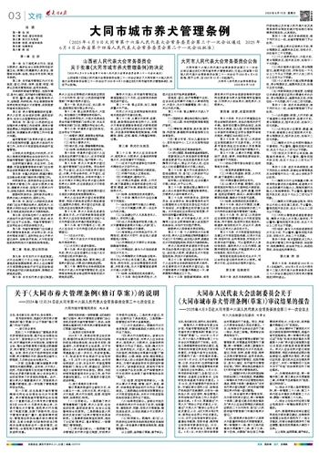 第四十五条 本条例自2025年10月1日起施行。2008年4月25日大同市第十二届人民代表大会常务委员会第三十八次会议通过的《大同市养犬管理规定》同时废止。