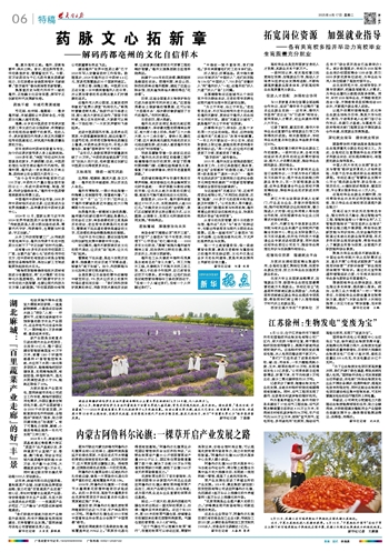 芍花路、杜仲路、亳菊路……漫步亳州城,半城道路以中药材命名,中医药文化融入城市肌理。
