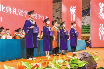 是日8时30分,毕业典礼在庄严的国歌声中拉开序幕。全体起立,面向国旗、高唱国歌。学校领导宣读《2025届本科毕业生毕业决定》《2025届本科毕业生学士学位授予决定》《2025届研究生准予毕业决定》《2025届研究生硕士学位授予决定》。校领导为优秀毕业生代表颁发荣誉证书和奖杯,并为研究生科技创新先进个人、2025届毕业生“学霸宿舍”代表、“研考十佳班级”代表等颁奖,同时为2025届毕业生校友联络大使代表颁发聘书和奖杯。