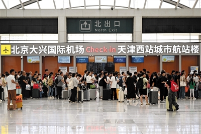 7月1日,全国铁路实行新的列车运行图,同时为期62天的2025年全国铁路暑期运输也拉开帷幕。图为,旅客在天津西站候车。