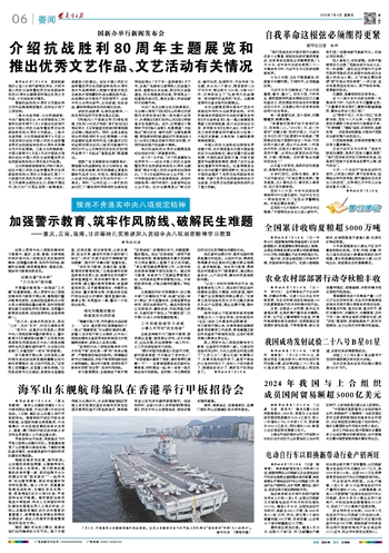 新华社香港7月3日电 (黎云 张懋瑄) 海军山东舰航母编队3日上午顺利抵达香港,开启为期5天的访问活动。3日晚,编队在山东舰上举行甲板招待会。香港特别行政区行政长官李家超,全国政协副主席梁振英,中央港澳办、中央驻港驻澳机构有关负责人,香港、澳门特别行政区政府部分官员和各界爱国人士代表应邀出席。