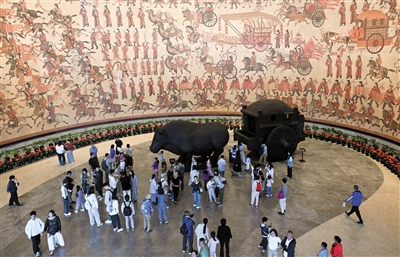 市博物馆内的北魏造像、辽金壁画等,生动呈现了千年古都的文化底蕴,吸引众多游客驻足观看。 资料照片