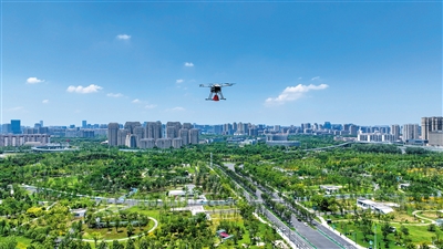 无人机在安徽合肥骆岗公园配送外卖(2024年7月5日摄,无人机照片)。
