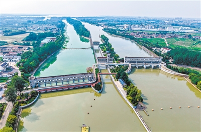 这是位于江苏省扬州市江都区的南水北调东线一期工程运盐闸、邵仙套闸、邵仙闸洞(7月6日摄,无人机照片)。