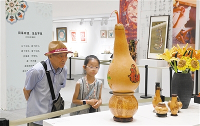 连日来,市美术馆热闹非凡,市民、游客在这里开启一场丰富的艺术之旅。观摄影展,感受镜头下的童年故事;看非遗展,领略传统技艺的深厚魅力;赏油画,沉醉于色彩与构图的美妙世界;品书法,感受笔墨线条间的韵味悠长;在少儿绘画区,充满童趣创意的作品让人眼前一亮。馆内汇聚多元艺术形式,各类展品交相辉映,吸引着众多市民、游客沉浸其中,收获满满的审美体验。图为7月17日,游客在市美术馆观看非遗展作品。 本报记者 张燕伟摄