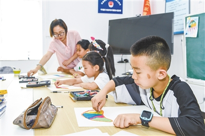 暑假期间,平城区开源街道民嘉社区联合辖区在职党员与大学生志愿者开设暑期公益课堂,为二至六年级学生送上丰富课程。公益课涵盖数学、绘画、英语、书法等,兼顾知识学习与兴趣培养。此次活动既解决了家长暑期看护难题,又为青少年搭建了成长平台,受到辖区居民好评。图为7月21日该社区小学生在公益课堂学习绘画。 本报记者 韩堃摄