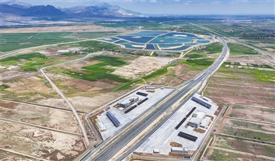 这是乌玛高速公路惠农至石嘴山段高庙湖服务区(7月22日摄,无人机照片)。