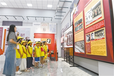 第一篇章、第二篇章、第三篇章……伴随着赵晓倩的讲解,孩子们认真地听着。他们有的在“革命烈士永垂不朽”的纪念墙前驻足,轻轻地念着他们的名字;有的在锈迹斑斑的冲锋号前凝神伫立,仿佛听见了当年刺破硝烟的号角;还有的对着泛黄的报纸出神,试图从斑驳字迹里读懂先辈的赤诚……