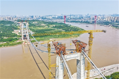 当日,由重庆城投集团投资、城投建设公司组织建设、中国铁建大桥局承建的黄桷沱长江大桥顺利完成主缆架设工作,标志着大桥建设即将进入钢桁梁吊装工序。黄桷沱长江大桥全长1260米,主跨765米,为单跨悬吊双塔三跨连续钢桁梁悬索桥,是国内最大跨径公轨两用悬索桥。黄桷沱长江大桥是渝长高速复线连接道工程的控制性节点工程,建成后将成为联系重庆主城区长江南北两岸的重要交通干道。