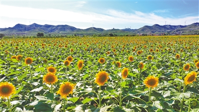 7月31日,雷公山下,平城区小石子村百余亩向日葵迎来盛花期。朵朵金黄的花盘向阳而生,汇成一片灿烂的金色海洋,与山峦相映成趣。微风拂过,花海泛起层层金浪,吸引不少游客、摄影爱好者慕名前来,共赏夏日美景。