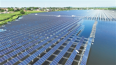 7月30日在铁岭县大青水库拍摄的光伏发电板(无人机照片)。
