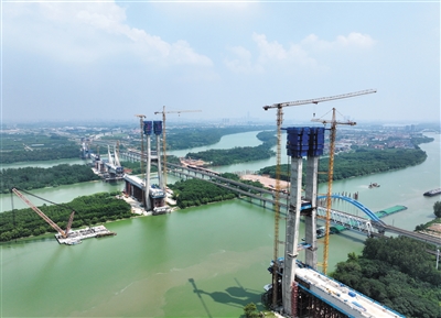 沪渝蓉高铁 跨京杭运河 斜拉桥主塔封顶