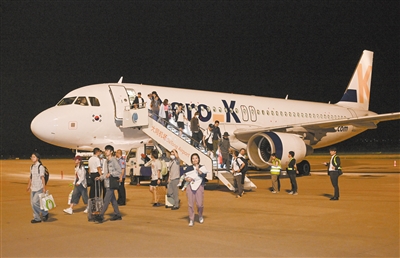 本报讯 (记者 李雪峰) 8月6日凌晨,一架搭载着首批106名旅客的韩国可依航空RF8453航班划破夜空平稳降落在大同云冈国际机场,标志着大同⇌首尔国际航线正式开通,成功架起两地便捷的“空中桥梁”。