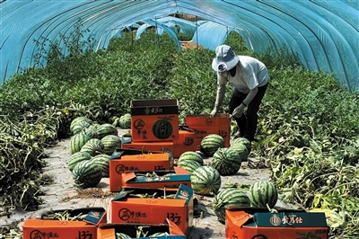 今年,该公司在车道口村流转土地1000亩,每亩建设4个大棚,主要种植“麒麟美都”等高品质西瓜,平均亩产达8500斤。“麒麟美都”优势显著,中心糖度超13%,果肉脆爽且耐储运,已陆续销往江苏、广东、湖北、湖南、四川、浙江、河北等多个省份,凭借优良品质赢得各地经销商和消费者的青睐。与此同时,基地的发展直接带动当地180多人实现就近就业,让村民在家门口获得稳定收入。