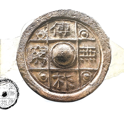 (三)“传祚无穷”文字瓦当:云冈石窟山顶三座佛教建筑遗址所出土的建筑材料中均发现有北魏时期瓦当。瓦当是中国古代建筑屋檐简瓦前端的装饰物,两汉以来多为圆形,并惯印吉祥用语或图案。北魏时期平城出土的吉语文字瓦当在继承汉晋文字瓦当的基础上进一步发展,内容多为祈愿北魏皇权统治永续、富贵长寿,如“传祚无穷”“万岁富贵”等,显示了鲜卑统治者强烈的政治愿望。