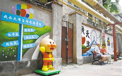 8月15日,在天津市和平区劝业场街道兆丰路社区,居民在胡同内休闲聊天。