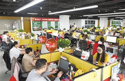 五险一金、餐补、房补、温馨宿舍、免费班车、定期团建、零食下午茶……设有2600个座席的京东物流(大同)客服中心,凭借优厚的薪资福利和广阔的职业发展空间,吸引了众多青年人才入职。截至今年7月,已累计入职7000余人次。该客服中心有关负责人表示:“京东将继续深耕主营业务,创造更多岗位,尽全力支持稳就业。” (下转第二版)