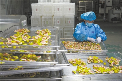 8月24日,在新泰市龙廷镇,一家食品加工企业的工作人员在生产加工无花果果干。