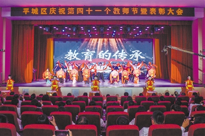 本报讯 (记者 田雁) 9月10日下午,平城区庆祝第41个教师节暨表彰大会在平城剧院举行,对全区教育战线涌现出的30个先进集体、567名优秀个人进行表彰,全面呈现该区高素质专业化教师队伍建设突出成就,系统展示教师立德修身、敬业立学、教书育人精神风貌,激励广大教育工作者坚守育人初心、勇担时代使命,营造全社会尊师重教良好氛围。
