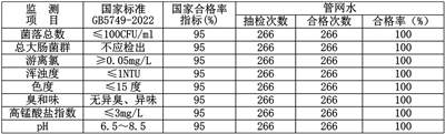 1. 19个采样点常规43项监测结果: 出厂水水质合格率100%;管网水水质合格率100%。