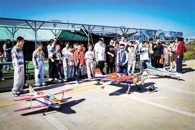 活动设多个特色体验区,让孩子们沉浸式感受科技魅力。在模拟飞行区,孩子们亲手操控竞速无人机,穿越不同障碍,沉浸式体验飞行的速度与激情。无人机足球表演将科技与运动相结合,灵活的机身穿梭、互动,引得现场阵阵欢呼。航模表演环节将活动推向高潮,固定翼3A、固定翼3D及涡喷飞行器依次升空,上演一系列高难度特技飞行,盘旋、翻滚、俯冲等动作行云流水。解说员同步解说航模的物理学原理和空气动力学知识,让大家在欣赏表演的同时,对航空航天领域有了更深入的了解。动手实践环节,在工作人员指导下,孩子们亲手拼装简易橡筋动力航模,并到空旷地带放飞。
