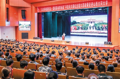 本报讯 (记者 丁亚琴) 9月12日,平型关大捷纪念馆宣讲团走进大同大学,开展以“铭记首战壮举 传承红色基因”为主题的宣讲活动。此次活动通过线上线下相结合方式,为大同大学2025级新生带来沉浸式思政教育课,引导青年学生铭记革命历史、传承红色基因,厚植爱党爱国情怀。