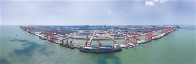 这是9月16日拍摄的江苏太仓港码头(无人机拼接照片)。