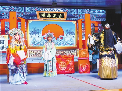 舞台上,包拯的黑面金纹扮相威严十足,皇姑的华丽凤冠宫装尽显华贵,秦香莲的素雅服饰朴实动人,搭配“公正廉明”的公堂背景,将经典冲突演绎得淋漓尽致,让业主们直观感受传统戏曲的独特魅力。