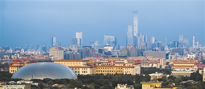 十月三日,城市建筑群在北京天际线形成壮丽的景观。