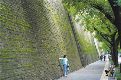 西安城墙始建于隋唐、扩建于明代,是中国现存历史最悠久、保存最完整的古代城垣建筑。连绵秋雨过后,苔藓等植物为西安城墙披上了一层绿色的外衣,吸引市民和游人驻足观看、拍照。