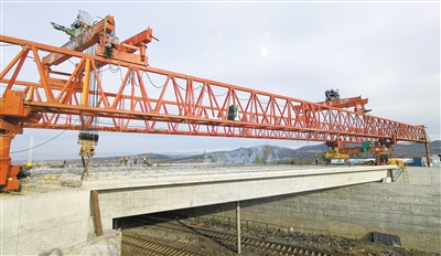 10月20日上午9时,在大同公路分局承建普通国道燕子山立交桥危旧桥梁改造项目施工现场,JQJ200—40A3架桥机将最后一片箱梁顺利安装在了桥台支座上,至此,全桥共计26片梁板顺利吊装完成,为实现年内通车目标奠定了坚实基础。