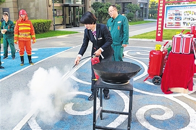 在电梯应急演练中,鸿泽物业联合专业维保单位模拟了人员被困场景。当中控室通过五方对讲接到呼救后,立即启动应急预案,安抚“被困人员”情绪并同步调度救援。维保人员迅速定位、精准操作,物业团队高效协同,在最短时间内安全解救“被困人员”,整个过程井然有序,充分检验了电梯故障应急机制的有效性。同期开展的消防演练则注重理论与实操结合。物业人员学习了灭火器使用要领,并进行了实地灭火操作和疏散逃生模拟。各应急小组反应迅速、配合默契,有效控制了模拟火情,展现出良好的专业素养和协同作战能力。