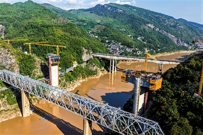 10月28日,随着新一代智慧悬臂造桥机的成功架设,由中铁十一局承建的西渝高铁嘉陵江特大桥进入桥面施工阶段,这也是智慧悬臂造桥机在西南地区斜拉索桥施工中首次成功应用,改变了传统挂篮依赖人工的作业模式。这是10月28日拍摄的西渝高铁嘉陵江特大桥建设现场(无人机照片)。 新华社记者 唐奕摄