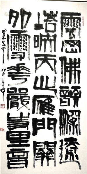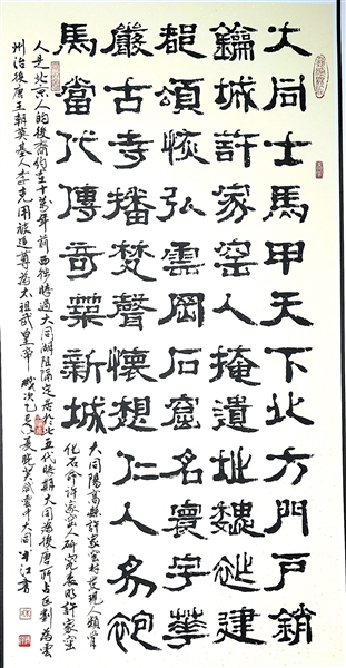 整个展览呈现师友书法院艺术家们近年来的创作成果,涵盖真草隶篆各种书体的书法作品,纵横捭阖、跌宕有致,既深植传统根脉,又蕴含时代气息。“龛中佛影凝秦汉,碑上苔痕锁晋唐。”“大同士马甲天下,北方门户锁钥城”等作品彰显了艺术家们对大同这座城市的高度赞誉。