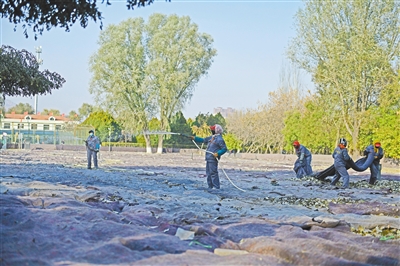 11月4日,口泉植物园工作人员为月季做地面保温措施、浇灌冻水。为做好树木防寒保暖冬季养护工作,确保园区内植物安全健康度过冬季,口泉植物园根据不同苗木种类、特性及生长状况等,采用涂白、搭设防寒棚、防寒布缠干、根部培土等不同方式提前进行养护。