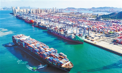“双十一”临近,中国(山东)自由贸易试验区青岛片区跨境电商包裹量不断增加,商品高效通关后密集装卸船。自贸区挂牌六年来,通过创新“区关港+”联动机制等百余项举措,为畅通国内国际双循环提供了坚实的物流支撑。