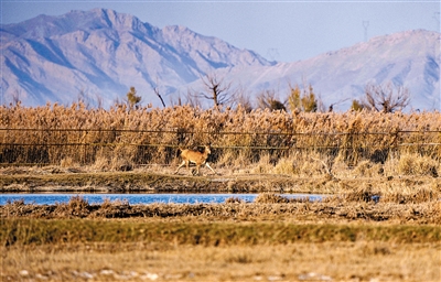 这是11月4日在宁夏青铜峡库区湿地自然保护区内拍摄的麋鹿幼崽。